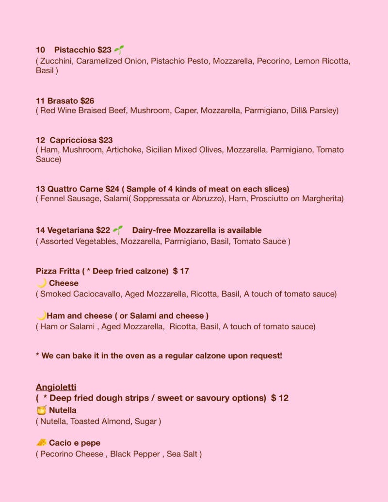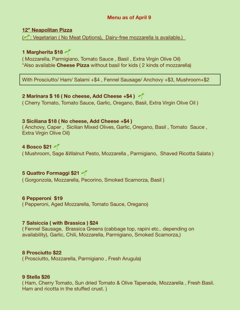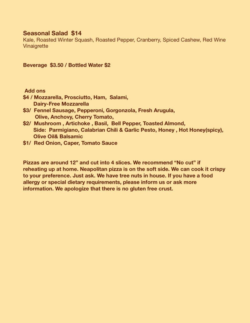 If you are placing a large order of 4 pizzas or more we ask you give us as much notice as possible. We are a tiny kitchen with only one chef preparing all the orders. We also have very limited oven space. We are happy to accommodate your orders, we just need notice to prepare. Thank you.